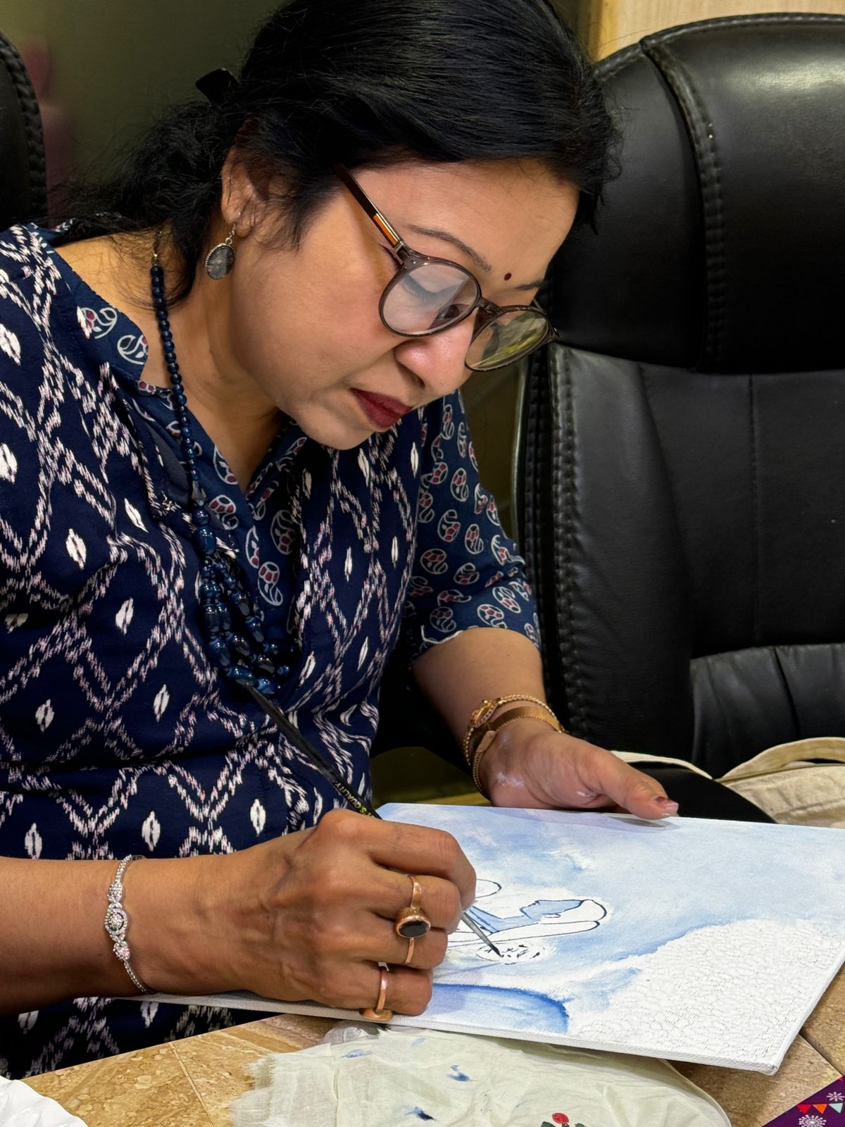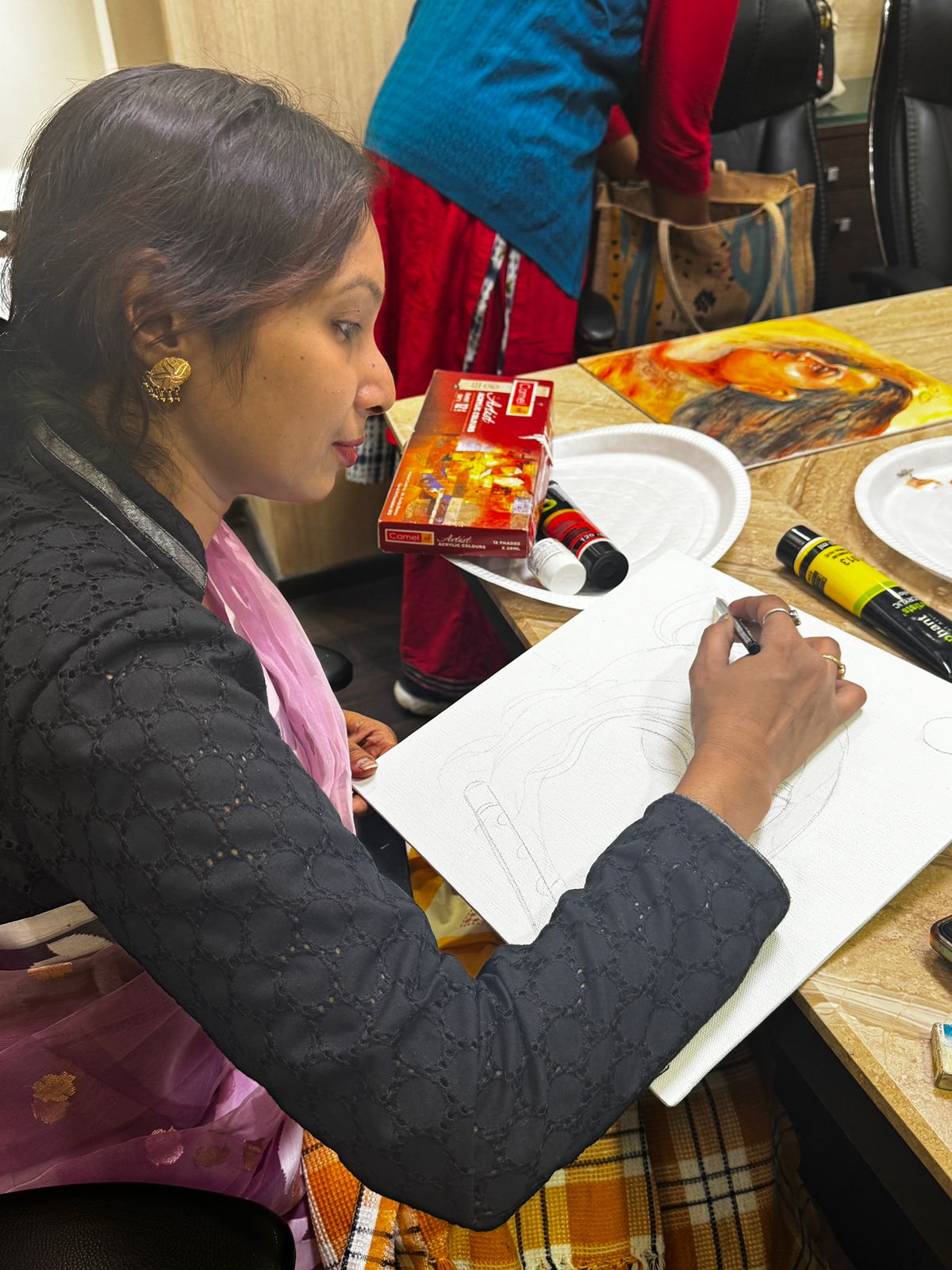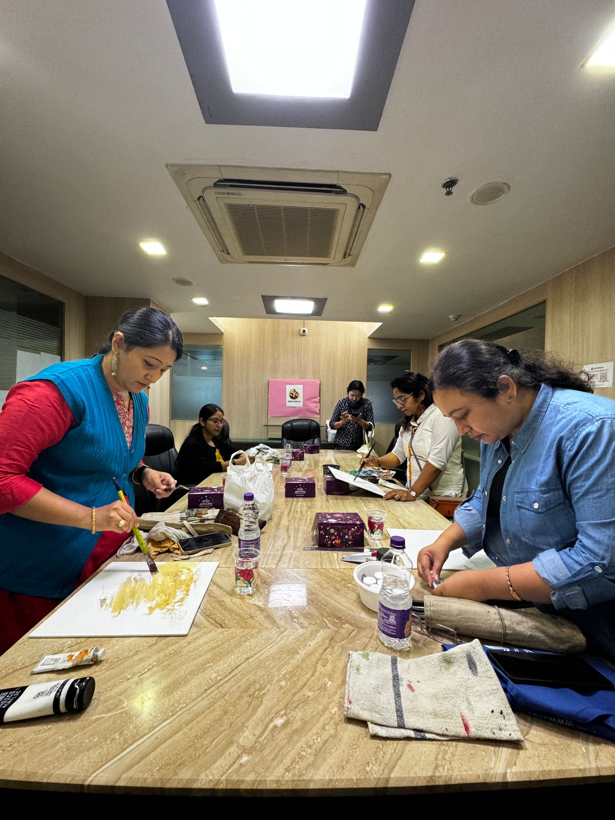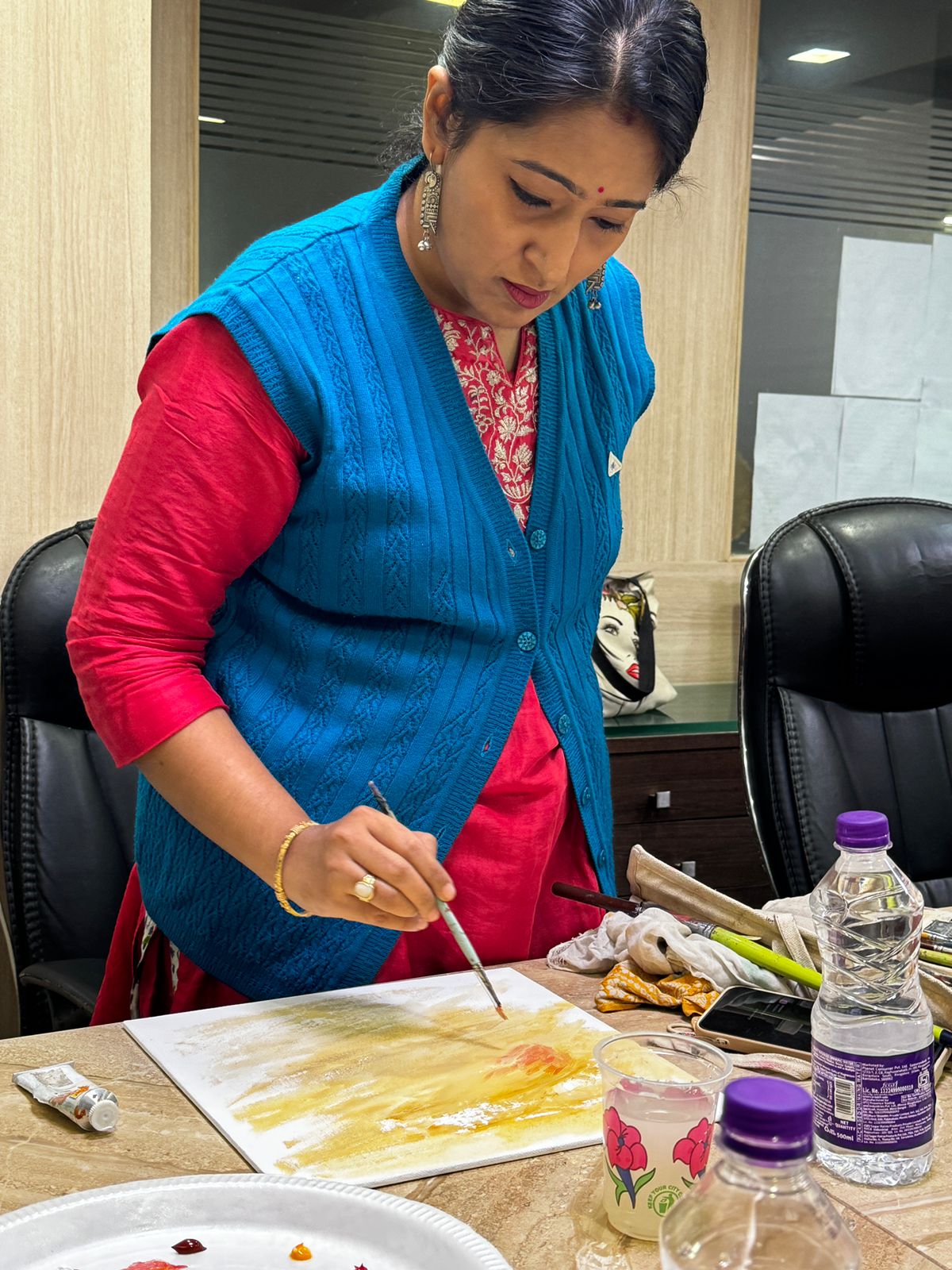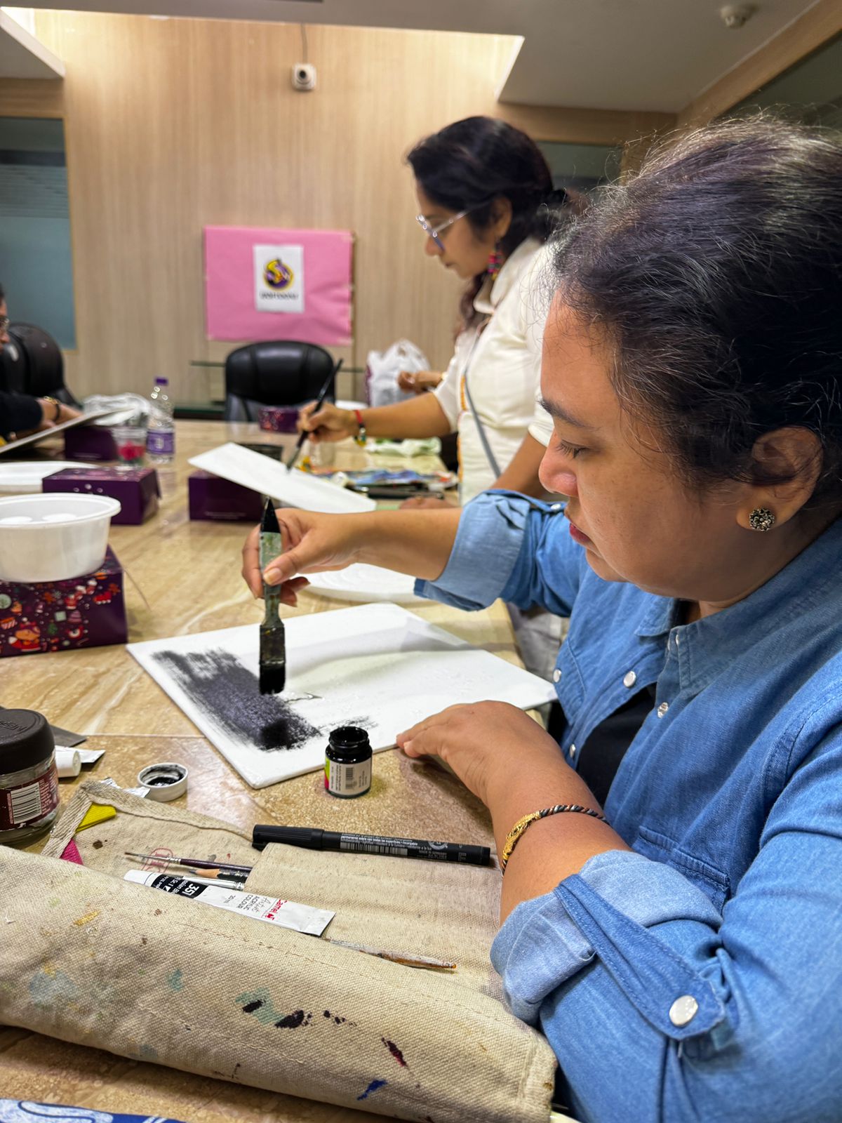 Painting Workshop: 𝐖𝐈𝐂𝐂𝐈 𝐡𝐨𝐬𝐭𝐞𝐝 𝐭𝐡𝐞 "𝐖𝐚𝐯𝐞" Painting Workshop with the support of our Animation and Entertainment Council, WICCI West Bengal president Mrs. Hansa Dangaich Mondal and our Council member and an esteemed Indian visual artist Tuli Guha.